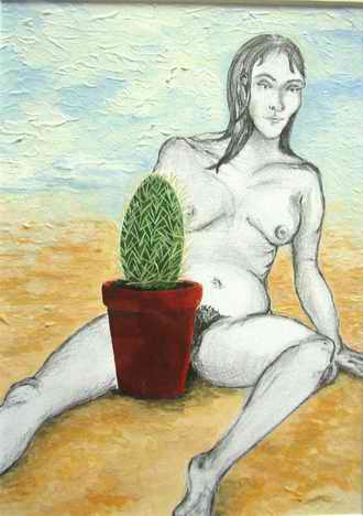 Akt mit Kaktus; 18 x 12.5 cm²; Tusche